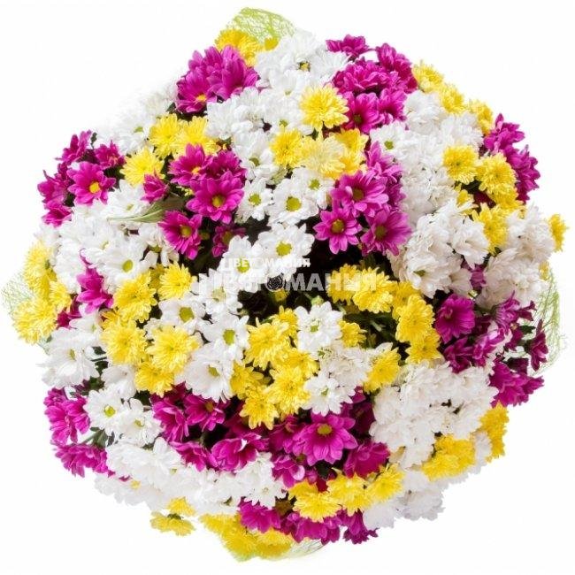 большой красивый букет из разных хризантем