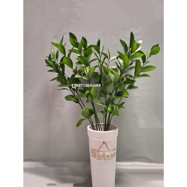 Рускус - широко используемая декоративная зелень с яркими изысканными листьями. Сочный насыщенный оттенок этого красивого зеленого растения эффектно сочетается с цветами ярких тонов, наполняя букеты особой колоритностью и торжественностью.
